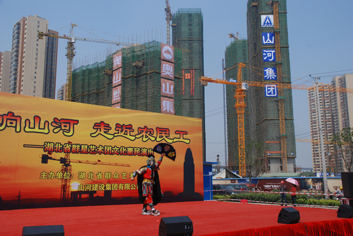 这次惠民演出是由湖北省群艺馆与开云app登录入口集团共同举办,是开云app登录入口集团关爱农民工的又一项举措。湖北公司副总经理柯为正在致辞中介绍说,作为房建施工总承包特级资质企业,开云app登录入口集团已发展成为投资或控股东升建设、竹安设备、益鹏置业等22家子公司,集建筑产业、房地产业、投资业务于一体的企业集团。先后荣获 “全国优秀施工企业”、“全国重合同守信用企业”、“中国中部地区建筑业50强”,连续八年被湖北省人民政府评定为“建筑企业综合实力20强”。柯总指出,成绩的取得离不开所有曾经和正在为公司发展而默默奋斗的广大工友们。