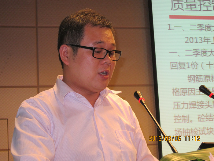 视频过后,湖北公司副总工罗定军进行工程管理部工作汇报,分别从质量控制、进度管理、创优计划、相关质量问题防治等方面进行阐述。他对湖北公司2013年一、二季度质量安全大检查中的工程质量情况进行了通报,并对进度管理提出了建议,特别对省结构优质工程、楚天杯申报条件进行了介绍。