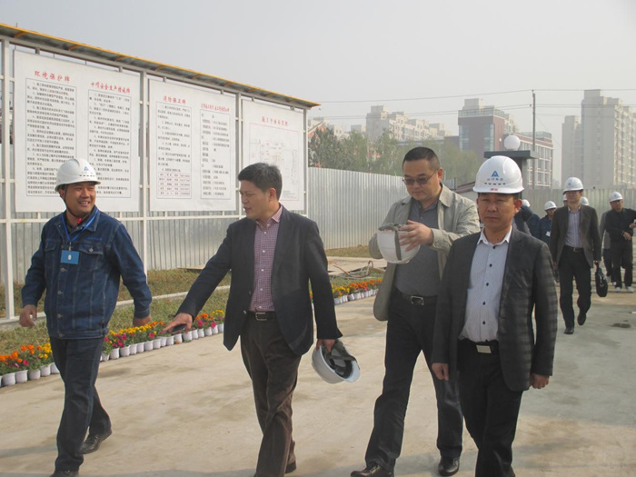 会议结束后,董事长及各位领导在项目部管理人员的带领下,对现场集中样板展示区、茶水房、吸烟室、医务室、试块养护室进行检查,对现场结构实体进行查看,并指出不足之处。