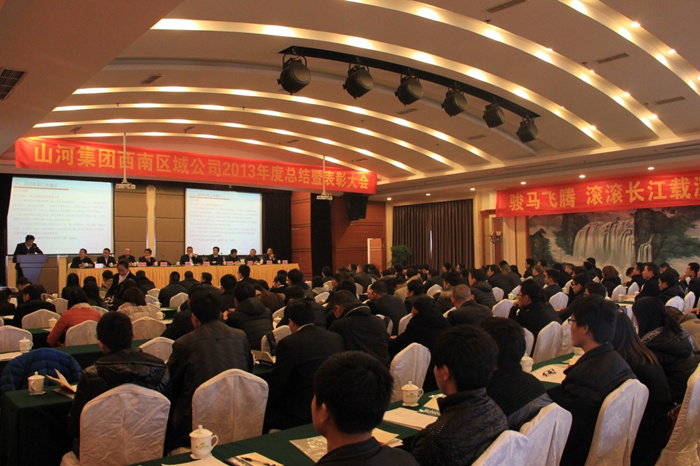 西南区域公司总经理丁贤林在会议上以“理清思路、升级管理、品牌共建、成果共享”为主题的报告,他首先感谢全体员工一年来的辛勤努力工作,并充分肯定了公司员工一年来各项工作所取得的成绩。并对西南公司整体及各核算单元运营模式,2013年西南公司总体运营效果及分析,以及2014年西南区域公司运营目标及措施做了具体报告。