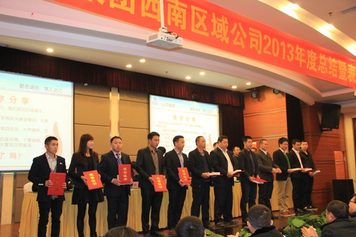 2013年12月28日,重庆铁山东方山水假日酒店会议大厅内张灯结彩,一派欢乐祥和的喜庆气氛,开云app登录入口集团西南区域公司2013年度总结暨表彰大会在此隆重举行。此次年会以“理清思路、升级管理、品牌共建、成果共享”为主题,公司领导和员工共聚一堂,在喜迎元旦佳节的同时,总结过去、展望未来,群策群力,共商发展大计。