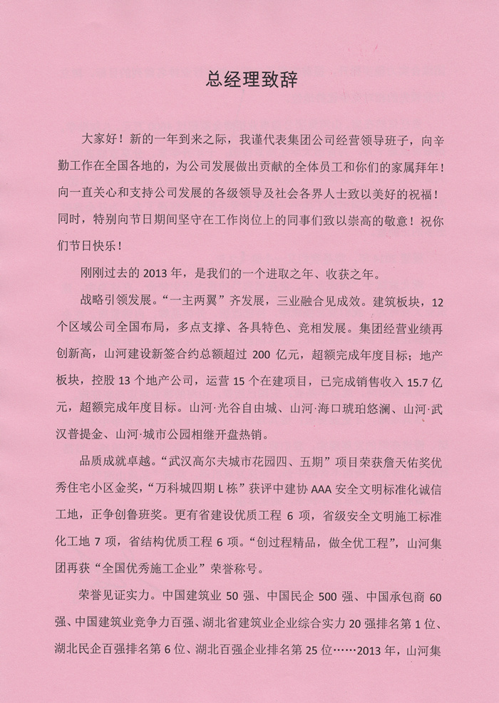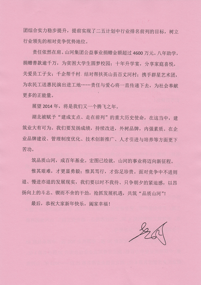董事长程理财2014年新年致辞