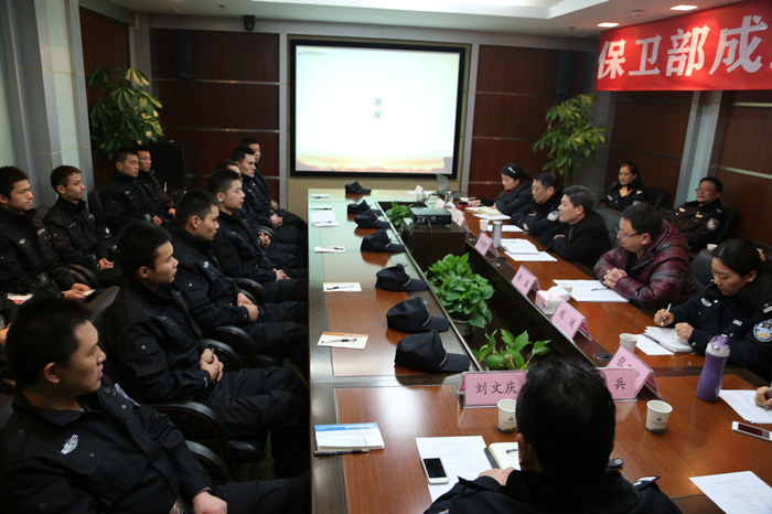 1月8日,开云app登录入口建设集团保卫部成立暨培训会议在集团公司四楼会议室召开,武汉市公安局经保处办公室主任姚鑫、洪山分局治安大队大队长程爱民及管理组成员、梨园派出所所长魏媛、梨园派出所教导员王兵、梨园派出所副所长刘文庆、梨园派出所辖区片警吴新建等应邀出席了本次会议,与会人员还包括集团公司董事长程理财、人事行政总监张玉琼、人力资源部经理孙宝环、办公室主任黎乐、保卫部经理徐刚、副经理董盼及保卫部全体员工。会议由人事行政总监张玉琼主持。