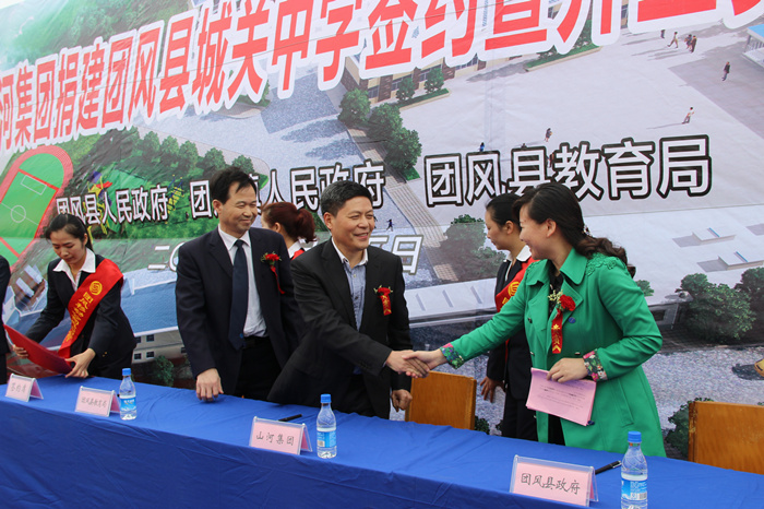 4月15日上午,开云app登录入口集团捐建团风县城关中学签约暨奠基开工仪式举行,团风县副县长黄菊花代表县人民政府与开云app登录入口集团董事长程理财签订了捐建协议书。