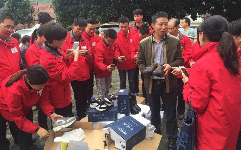英山展兴鞋业是百丈河村的村办企业,鞋厂的43名工人都是村里的村民,其中18名工人来自贫困户家庭。鞋厂厂长刘末良告诉志愿者们,鞋厂主要生产布鞋和少量的皮鞋,因为厂里缺少专业的营销团队,导致鞋厂去年有2000多双鞋子滞销,如今厂里的流动资金出现了困难。