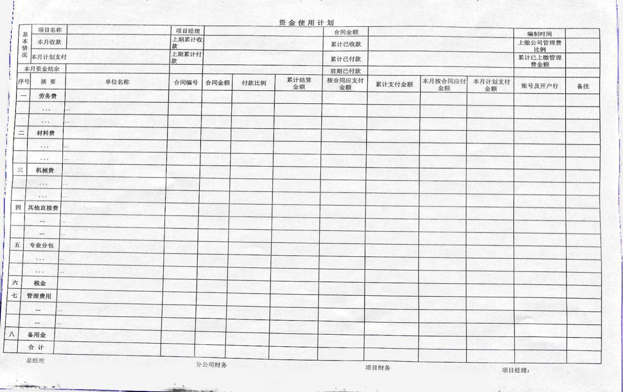 4、根据资金计划,分单位填制资金支用单,项目部财务人员对该过程把好关,即做好“六不支付”------不开收据不付款、没有结算或结算不够不付款、发票不够不付款(或预留相关税金)、委托支付不付款、签字手续不齐不付款、没有尾款承诺的不付款。