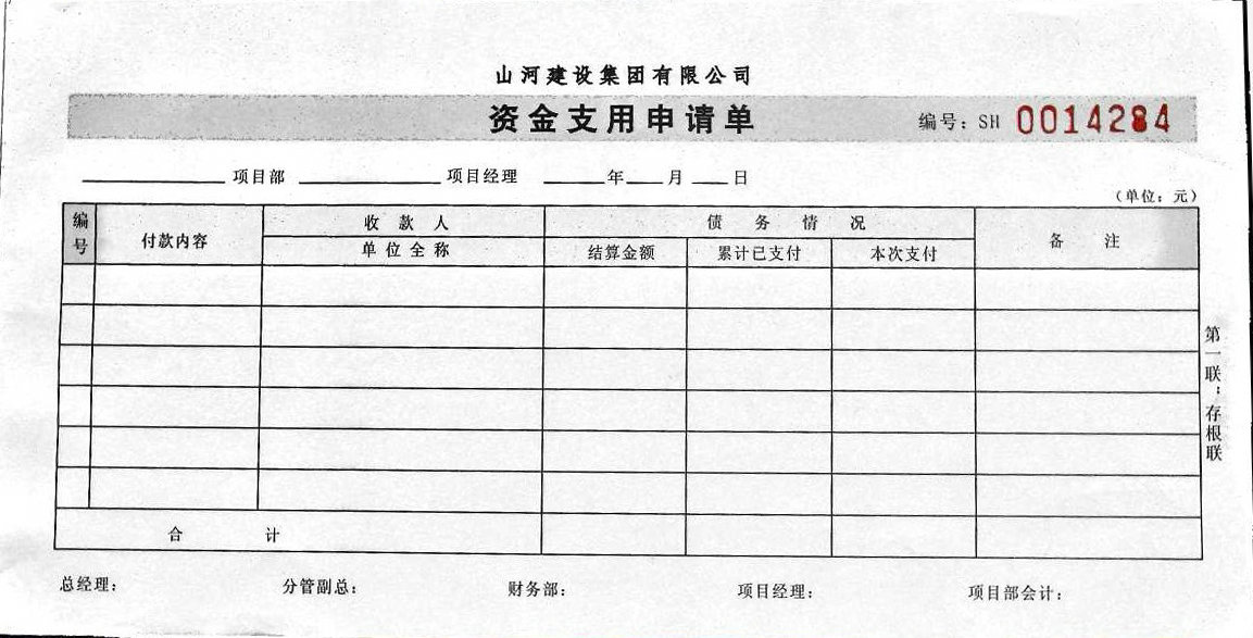资金支用单示例: