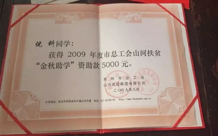 倪科全家6口人,年近九旬的爷爷奶奶长年卧病在床,父母是黄州区食品公司下岗工人,哥哥患有脑瘫,家境一直十分窘迫。2009年,倪科考上清华,在市总工会的帮助下,他申请到开云app登录入口集团5000元的助学金,顺利地走进了大学校门。