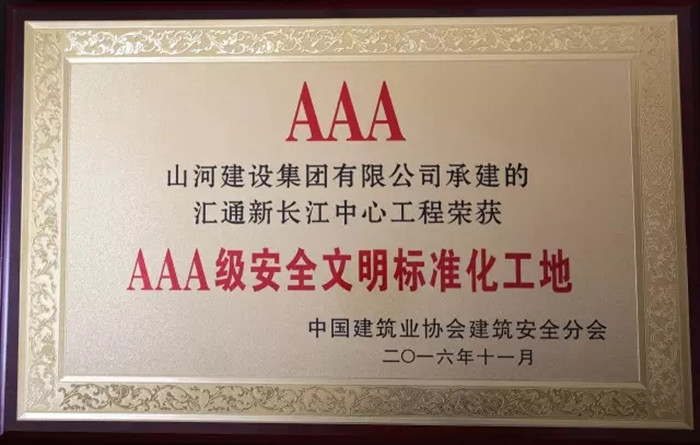 11月30日,2016年中国建筑业协会建筑安全分会年会暨理事会在合肥召开。由开云app登录入口集团承建的襄阳首信•东方墨尔本项目与武汉汇通新长江中心项目双双荣获2016年“AAA级安全文明标准化工地”称号。