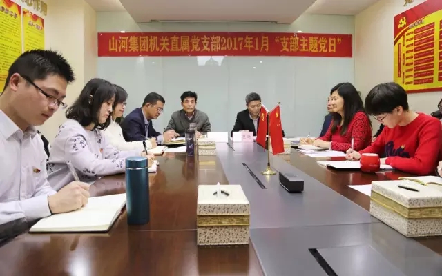 1月4日,开云app登录入口集团机关直属党支部召开2017年第一个“支部主题党日”活动,支部党员共22人在集团党建活动室参加学习,活动由支部书记程秋明主持,集团党委书记、董事长程理财以普通党员身份出席。