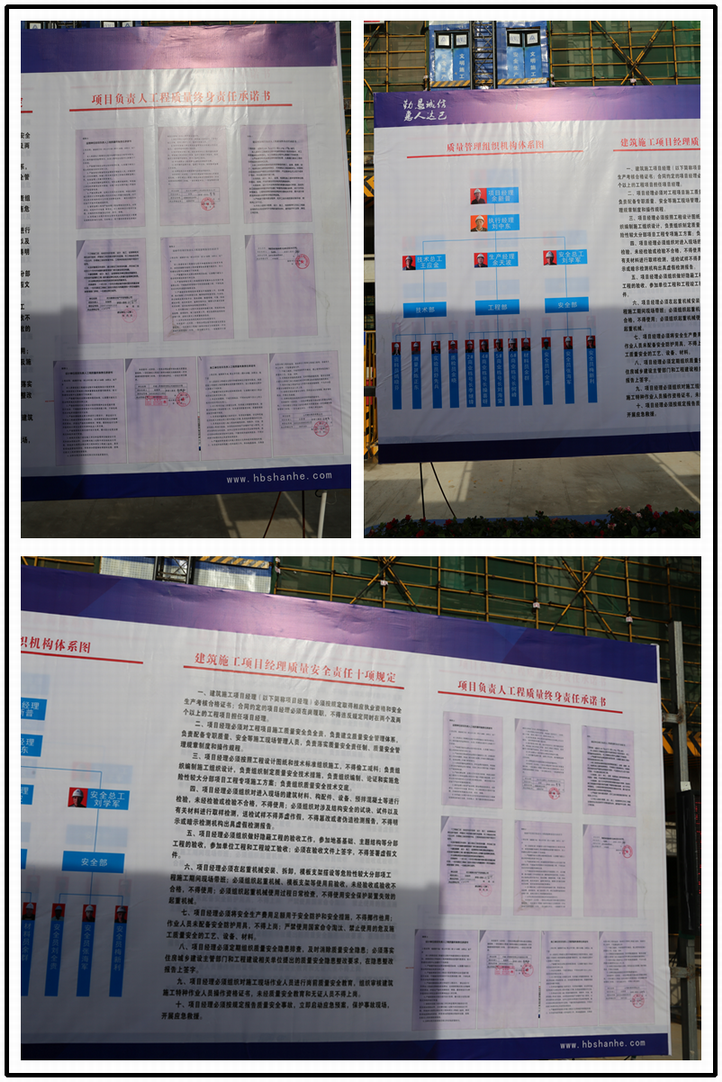 坚持安全文明施工标准化,办公区、生活区、施工区布置三区分离,施工现场大门设置人行通道,保证人车分流;在进场大门左侧醒目位置设置“九牌三图”,发挥班前讲台作用,每天清晨宣贯工作作业相关注意事项,项目组织机构及五方责任承诺公示、门卫打卡、视频监控、车辆冲洗、场区降尘、重大危险源公示栏等严格执行标准。