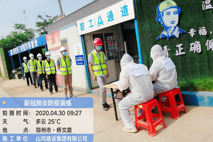 上午9时许,演习正式开始。测温人员“全副武装”,施工人员间隔一米排队检测体温,合格后依次进入工地……检测过程中,一名工人的体温达到37.7度,测温人员高度警惕,经了解没有头痛、咳嗽等症状后,将其带到项目隔离区进行体温复测,询问了返岗时间、交通方式、接触人员等情况,并向项目经理进行了汇报。