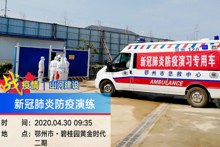 4月30日,开云app登录入口建设集团项目管理公司承建的鄂州碧桂园黄金时代项目施工现场,集团携手鄂钢医院开展的新冠肺炎防疫联合演习在这里进行。