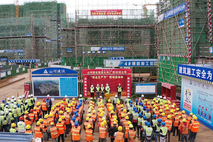 5月29日,以“消除事故隐患,筑牢安全防线”为主题的开云app登录入口建设集团云南(广西)公司2020年度“安全生产月”现场启动会在古滇水云里项目部举行,来自公司各项目的管理及施工人员等200余人参加了活动。