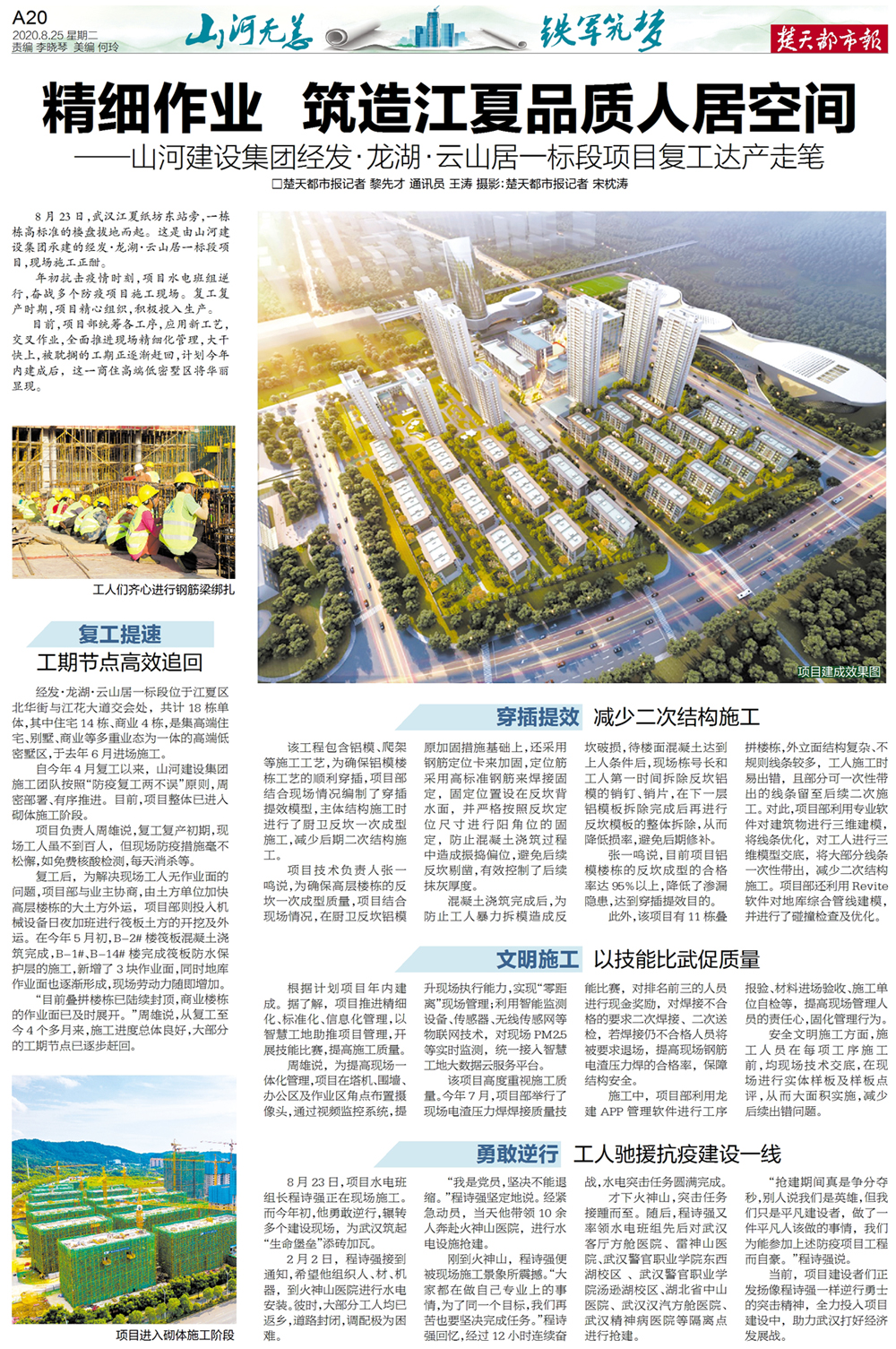 8月25日,《楚天都市报》“开云app登录入口无恙 铁军筑梦”特刊刊发了开云app登录入口建设集团项目管理公司经发·龙湖·云山居一标段项目复工达产的采访报道。这是继6月18日刊发湖北公司相关报道后,楚天都市报再次聚焦集团建设一线。在疫后重振的关键时期,集团各项目部正“火力全开”加快施工进度,全力以赴推动项目如期建成。