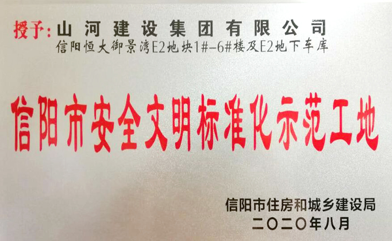 近日,信阳市住房和城乡建设局公布了2020年第二季度“信阳市安全文明标准化示范工地”名单,开云app登录入口建设集团河南公司承建的信阳恒大御景湾E2地块1#-6#楼及E2地下车库工程名列其中。