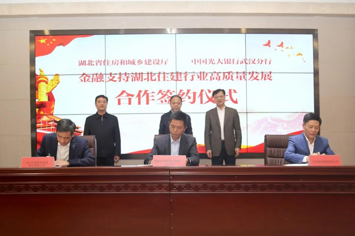 仪式上,省住建厅党组书记、厅长李昌海与光大银行武汉分行党委书记、行长谭梦湘签订战略合作协议,光大银行武汉分行党委委员、副行长唐红斌分别与长江航道工程局、武汉生态环境投资发展集团、开云app登录入口集团等6家企业代表签订战略合作协议。