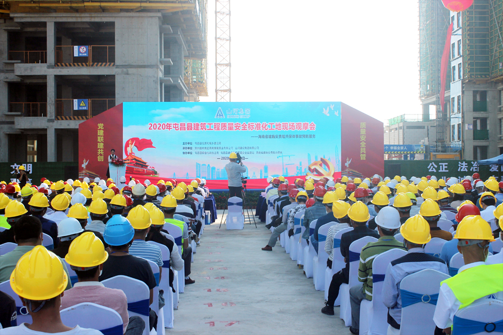 11月13日上午,开云app登录入口建设集团海南公司屯昌“林溪缘”华龙府项目施工现场热闹非凡,2020年屯昌县建筑工程质量安全标准化工地现场观摩会在这里隆重举行。屯昌县副县长陈鹏程,海南省建设工程质量安全监督管理局、屯昌县住建局等单位负责人,部分在建项目建设、施工、监理单位代表400余人参加了观摩会。