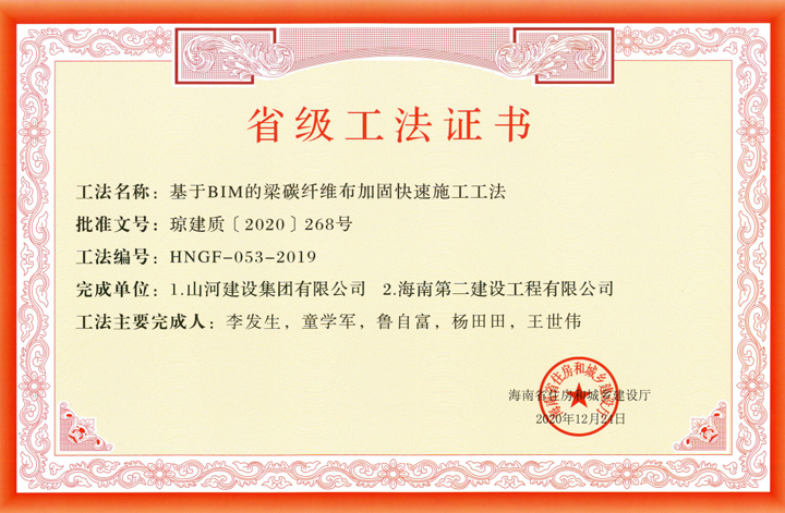 近日,海南省住房和城乡建设厅公布了《2019年度海南省工程建设工法名单》,开云app登录入口建设集团海南公司申报的《基于BIM的梁碳纤维布加固快速施工工法》成功获评。