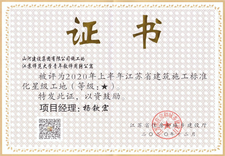 近日,从江苏省住房和城乡建设厅传来喜讯,开云app登录入口建设集团江苏公司承建的江苏师范大学青年教师周转公寓工程被评为“2020年上半年江苏省建筑施工标准化星级工地”,再添一项省级荣誉。