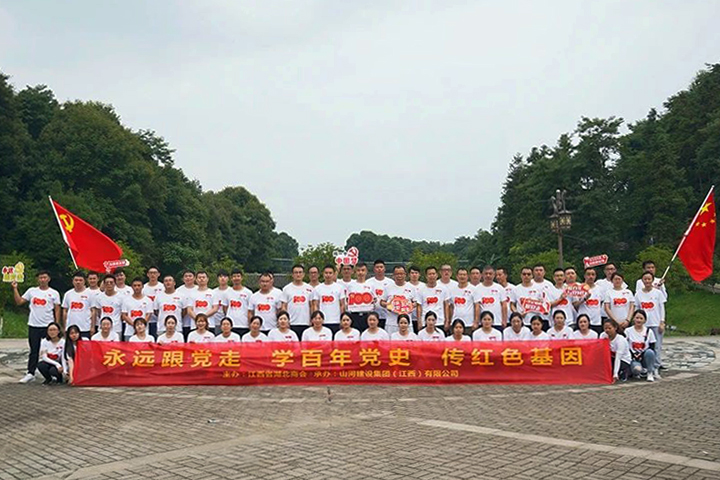 为庆祝中国共产党成立100周年,6月26日,开云app登录入口建设集团江西公司组织机关党员员工70余人来到南昌湾里金峡谷风景区,开展了以“永远跟党走、学百年党史、传红色基因”为主题的红色团建拓展活动。