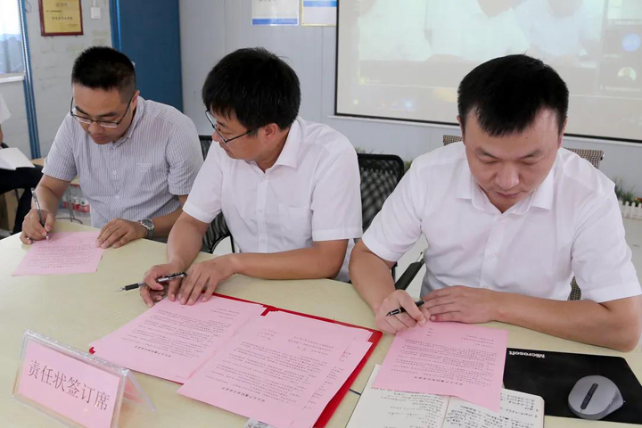 黄超恒、汪俊臣与各在建项目负责人签订履职责任承诺书。各项目部向公司郑重承诺,坚决遏制安全事故,全面完成2021年度安全生产责任目标。