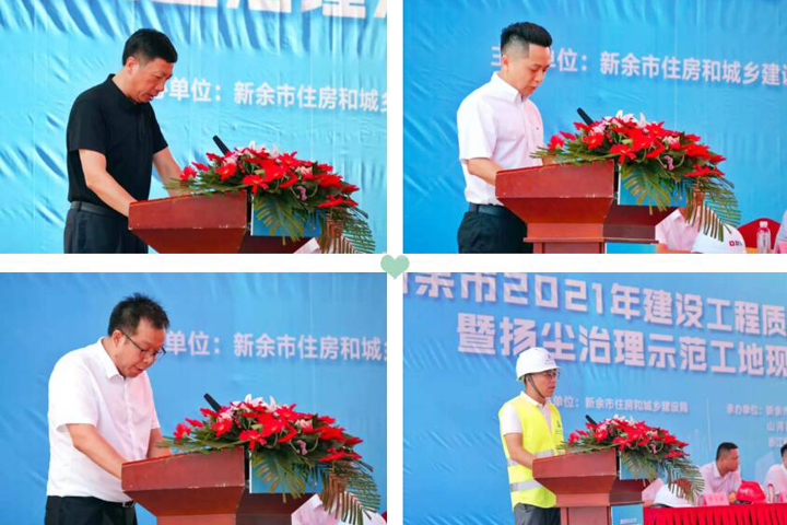 活动伊始,新余市建管局局长何祝生、新余市永越置业有限公司总经理郜文、开云app登录入口建设集团江西公司总经理熊善杰分别发言,联发永康状元府项目经理袁传根就项目质量安全、扬尘治理等方面进行了经验分享。