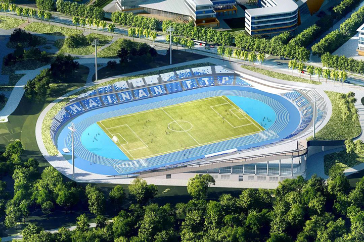 海南公司承建的试验区体育场项目是园区的重要组成部分,总用地面积约5.48万平方米,建筑面积5307平方米,采用装配式施工。体育场建筑层数为地上二层,总高度24米,并新建室外运动场1座(含400米标准竞赛场地22000平方米)。