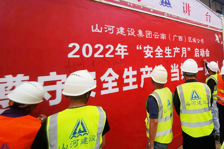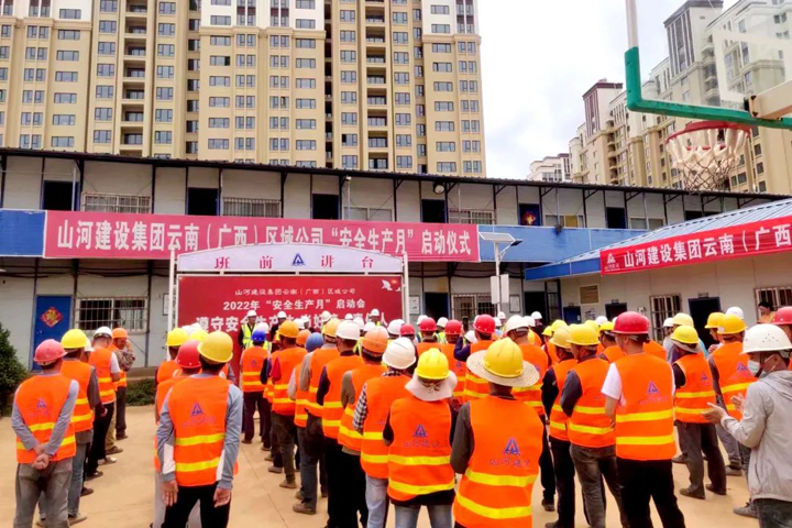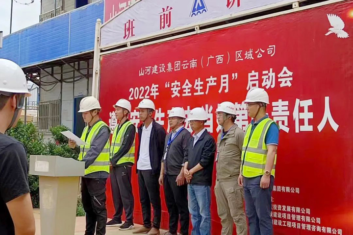 6月1日,开云app登录入口建设集团云南(广西)公司2022年安全生产月启动会在龙四项目及附属市政道路项目施工现场举行,围绕“遵守安全生产法 当好第一责任人”这一主题,对安全生产月活动和近期重点工作进行安排部署。云南(广西)公司副总经理兼云南分公司总经理刘火焱、副总经理秦大顺、工程团队全体人员、在建项目代表及建设单位代表等近100人参加了活动。