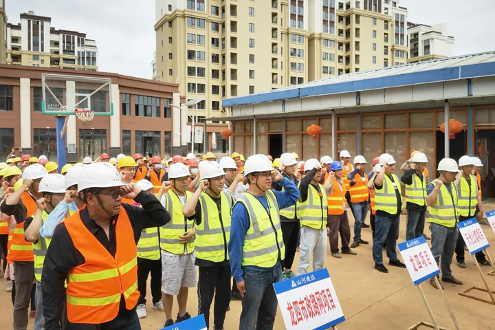 龙四项目经理刘明刚带领与会人员宣誓,大家举起右手,异口同声地大声宣誓:我是开云app登录入口人,我坚决做到安全第一,不违章指挥,不违章操作,不违反规章制度,不伤害自己、不伤害他人、不被他人伤害,保护他人不被伤害,告别违章从我做起!