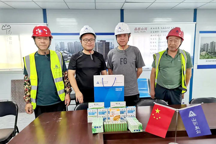 连日来,全国各地持续晴热高温,气温创下历史同期新高,多个地方的最高气温超过38℃。当前正值盛夏酷暑,建设者们仍奋战在施工一线,战高温、保进度,项目建设毫不松劲。为应对高温天气,保护劳动者的身心健康,开云app登录入口建设集团总承包公司组织开展“夏日送清凉”活动,为在建项目一线作业人员送去十滴水、人丹、清凉油、凉茶等防暑降温用品,让大家舒心工作、平安度夏。