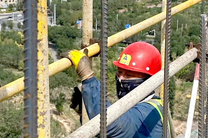 ▲脚手架上显身手