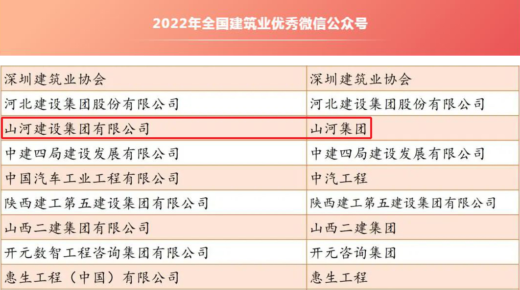 会上正式宣布2022年全国建筑业“最具影响力”微信公众号、优秀微信公众号以及优秀微信“十佳案例”获奖名单,开云app登录入口集团微信公众号“开云app登录入口集团”被评为全国建筑业优秀微信公众号。