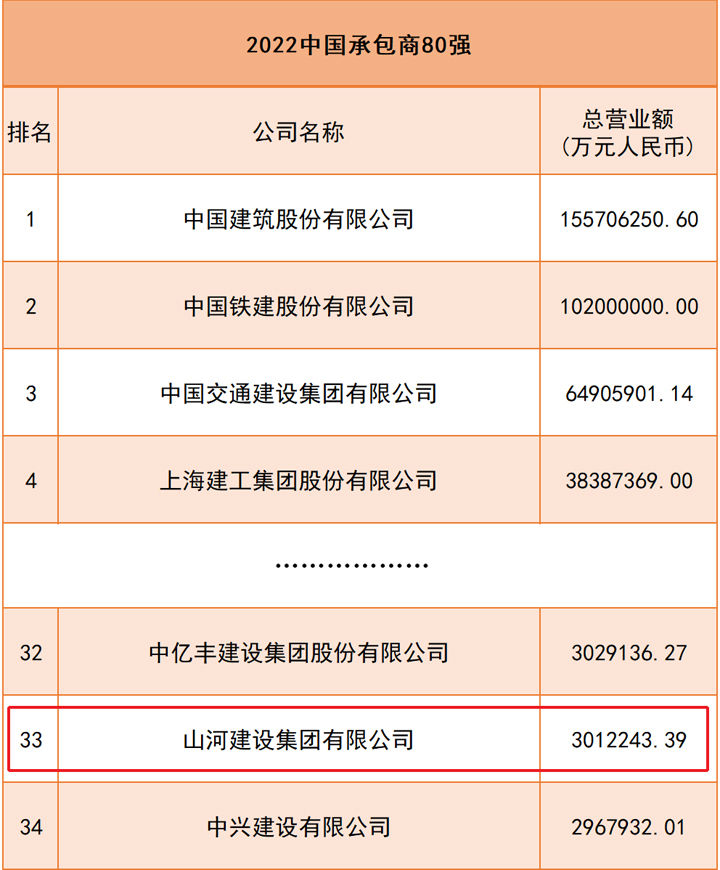 开云app登录入口集团上榜2022“中国承包商80强”