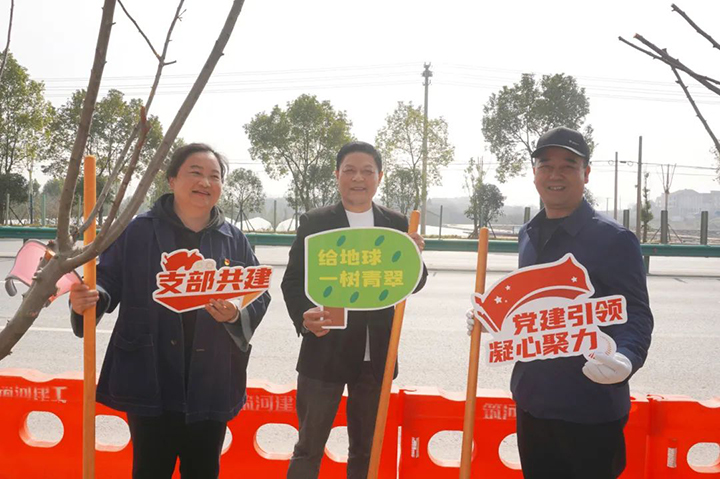 坚持红色引领,助力绿色发展,3月12日,在第46个植树节到来之际,湖北省建设工程质量安全协会党支部、黄冈市城市建设有限公司机关党支部、湖北筑河建筑工程有限公司党支部联合开展“聚力党建红 共护生态绿”义务植树主题党日活动。