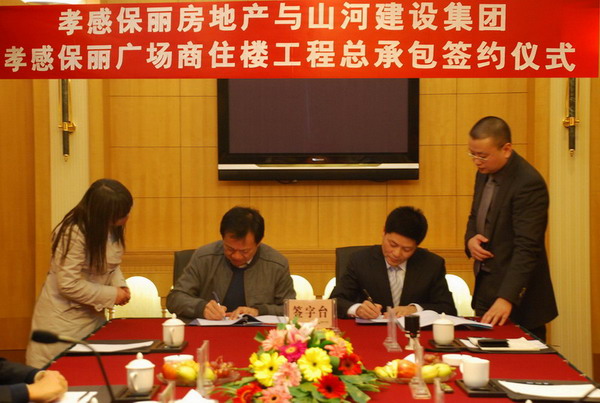 2009年11月23日下午5时,在美丽的东湖之滨,孝感保丽房地产与开云app登录入口建设集团举行了“孝感保丽广场工程”总承包签约仪式。